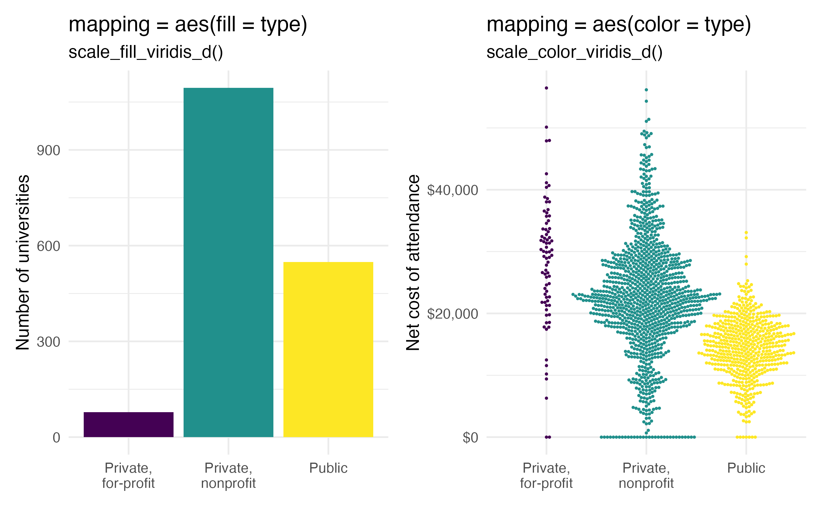 fill vs. colorfill when a geom is filledcolor when a geom is outlined