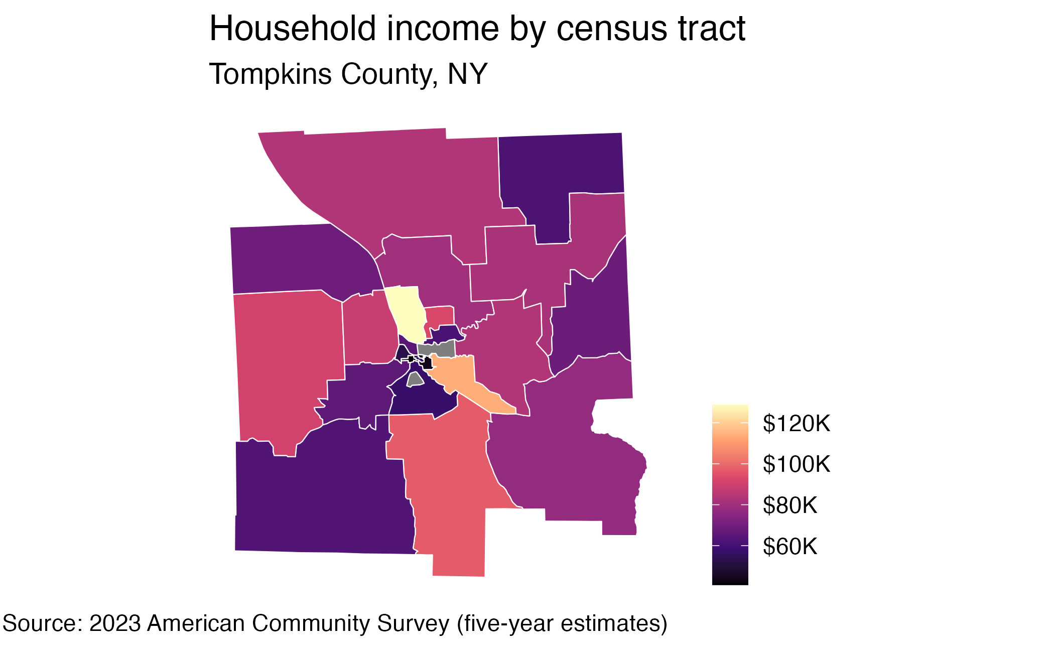 4 36109000500 Census Tract 5; Tompkins County; New York medincome 92335 6203