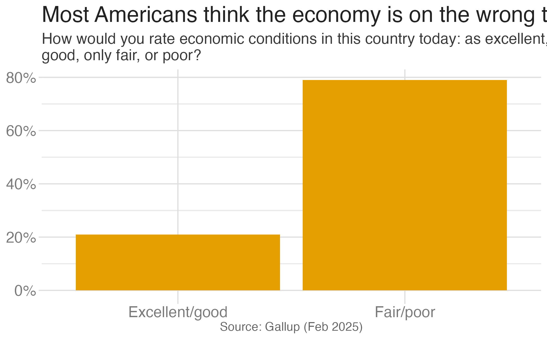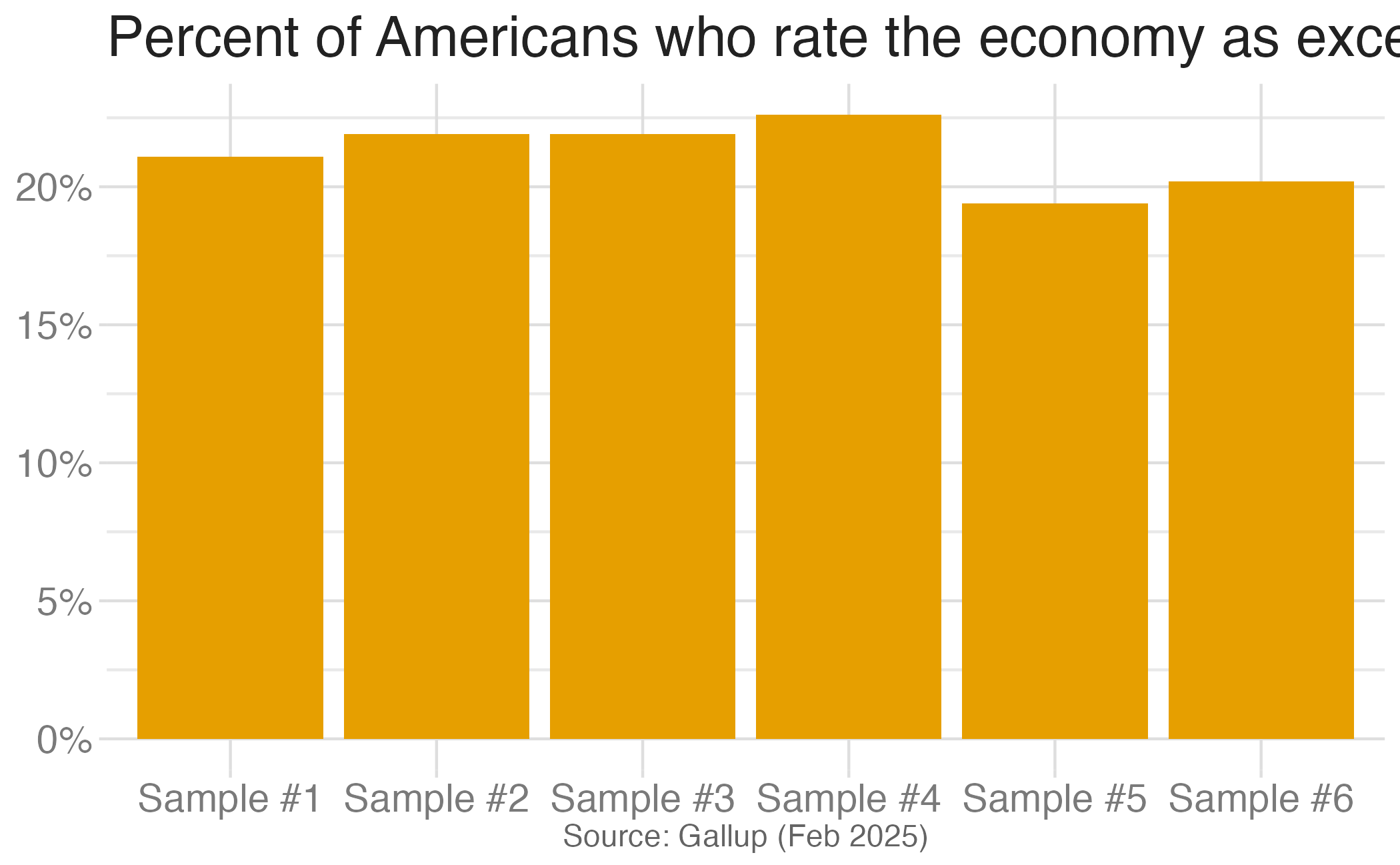 Null hypothesis: The percentage of the American public who believes the economy is excellent/good is 18%.